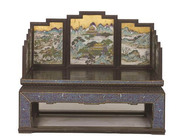 紫檀木嵌珐琅宝座(清)。