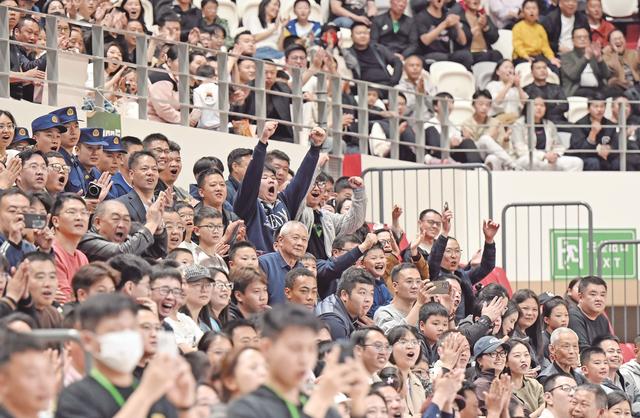 看台上,10岁的小球迷胡菁蔚跟着妈妈一起来看球。“球赛非常精彩,还拿到了一个娃娃,我很开心。”胡菁蔚说。