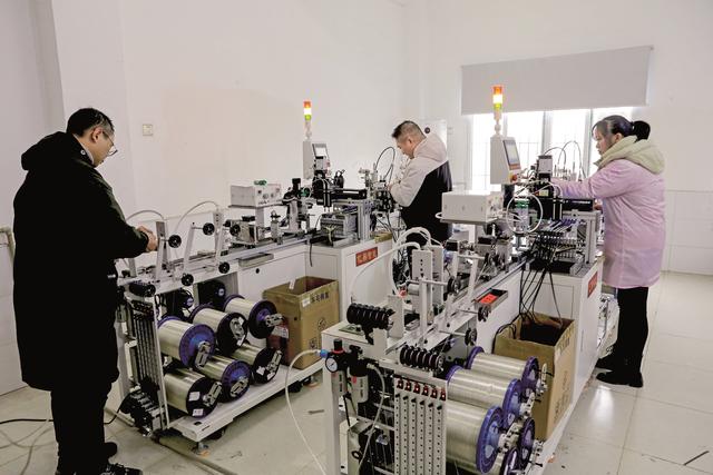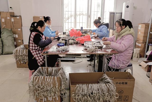 2025年12月31日,位于广安区花桥镇蒲莲社区的四川闪亮光灯饰有限公司生产车间,工人正在给灯饰接线。