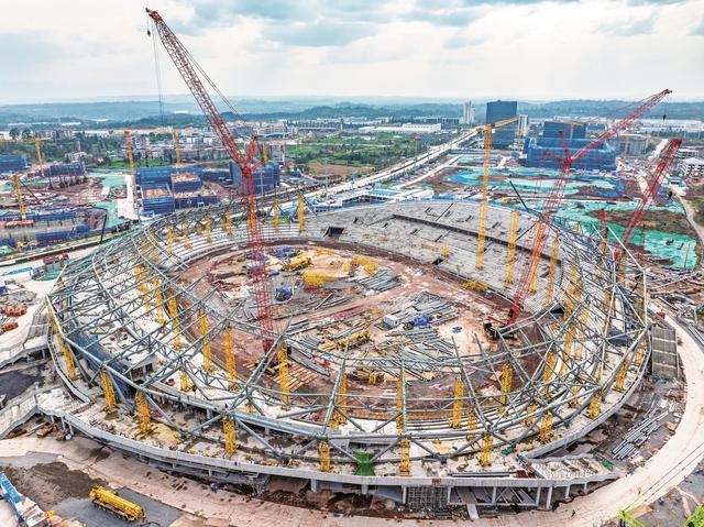 近日,广安区官盛新区,川渝广安共享体育基地工程项目正加快建设。(特约摄影师 张国盛