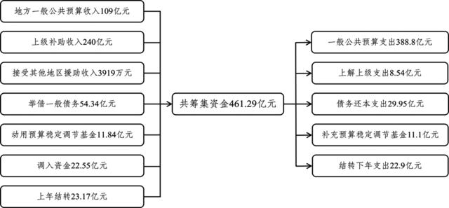 市县两级实现收支平衡。全市筹集的财政收入461.29亿元,一般公共预算支出388.8亿元,用于上解上级8.54亿元、债务还本29.95亿元、补充预算稳定调节基金11.1亿元,剩余22.9亿元结转按原用途继续使用。
