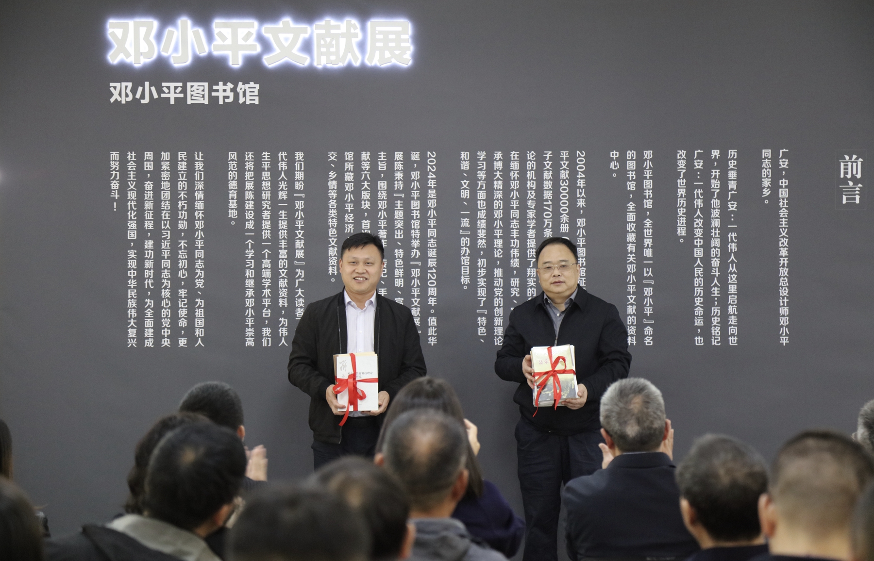 本次展陈秉持“主题突出、特色鲜明、富有影响”主旨,展出的展品是邓小平图书馆从馆藏2万余册邓小平文献中精心挑选的300多种珍贵文献,内容涵盖邓小平理论著作、手迹手稿、研究文献、画册图片、影音影像等,首次对外系统展出邓小平图书馆所藏邓小平经济、政治、文化、军事、外交、乡情等各类馆藏孤本文献。其中包括邓小平同志三女儿邓榕捐赠的中外各种版本的《我的父亲邓小平》,俄罗斯总统普京访华赠送的国礼之一《邓小平》(俄文版),线装本《邓小平文选》《邓小平手迹选》,小平同志青年时代参与编辑、亲手刻印的《赤光》杂志复制件等。