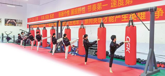 除了刻苦训练,队员还会接受教练的技术指导。“踢腿的动作不能变形,出拳也要用力。”该队教练曹静说,“冬天主要训练队员的身体能力和力量对抗能力,每天训练分为力量训练和强化技术训练两个周期。”