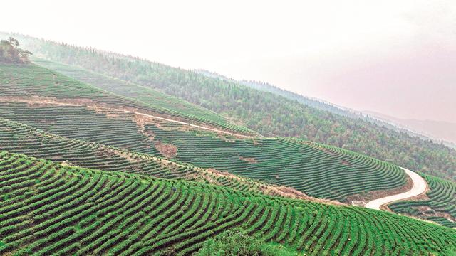 邻水县明月山西麓旅游环线47公里新建及改扩建工程通车后,丰禾镇关口村白茶基地的茶园面积从原有的1800亩扩展至7000余亩,全力打造集高端名茶生产、休闲文旅于一体的白茶产业融合示范园,联动一、二、三产业融合发展,打响“邻水白茶”品牌,助力乡村振兴。(邻水融媒 冯强 摄)