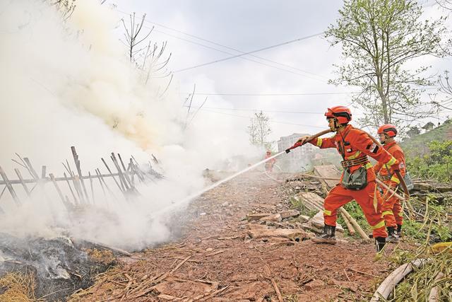 在火场的攻坚一线,重庆合川、达州两支队伍紧密配合。他们采取“以水灭火+常规扑打”相结合的科学战术,一边利用大功率水泵、移动水炮对火头实施精准压制,阻断火势蔓延路径;一边组织经验丰富的攻坚队员,使用风力灭火机、二号机具等装备,对地表火、暗火开展拉网式清理。