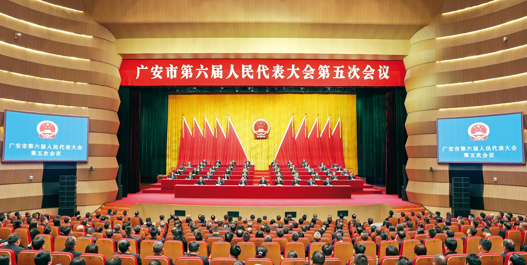 2月11日上午,广安市第六届人民代表大会第五次会议圆满完成各项议程后,在小平干部学院珠海大礼堂闭幕。
