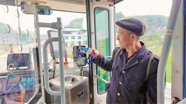 村民刷卡乘坐公交车。