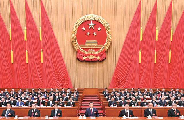 3月12日下午,第十四届全国人民代表大会第四次会议在北京人民大会堂闭幕。党和国家领导人习近平、李强、王沪宁、蔡奇、丁薛祥、李希、韩正等在主席台就座。 新华社记者 谢环驰 摄