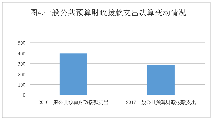 (一)一般公共预算财政拨款支出决算总体情况。2017年度一般公共预算财政拨款支出286.54万元,占本年支出合计的100%。与2016年相比,一般公共预算财政拨款减少109.72万元,下降27.69%。
