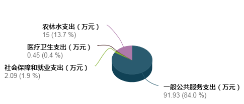 2017年一般公共预算财政拨款支出109.47万元,主要用于以下方面:一般公共服务支出91.93万元,占83.98%;社会保障和就业支出2.09万元,占1.91%;医疗卫生支出0.45万元,占0.41%;农林水支出15万元,占13.70%;…。