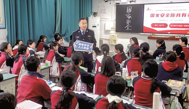 4月14日,广安区司法局狱警龙小平向学生讲解国家安全知识。特约摄影师 廖小兵 摄