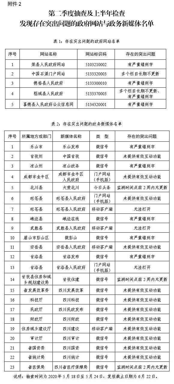 2.第二季度抽查及上半年检查发现存在突出问题的政府网站与政务新媒体名单