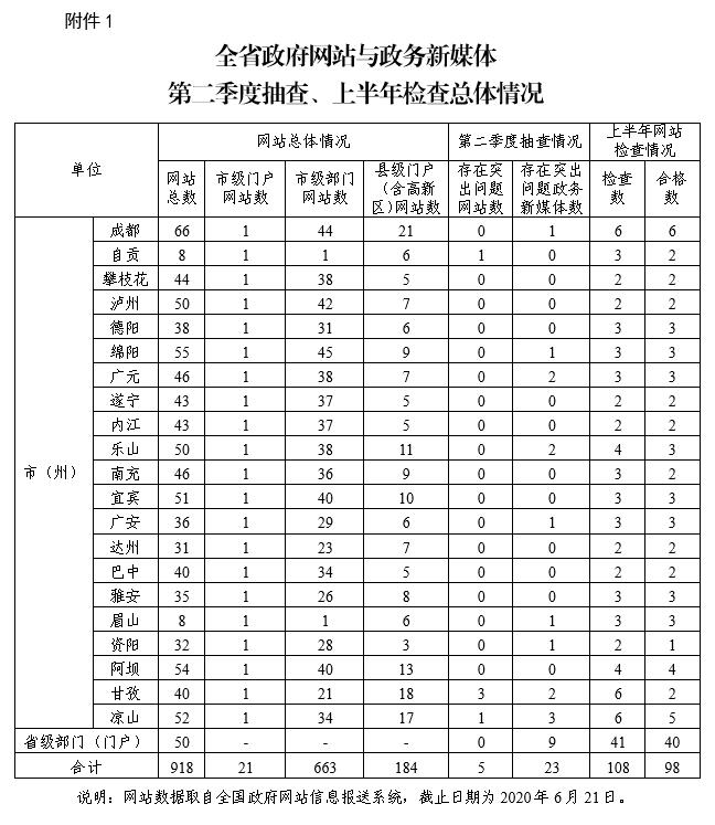 附件:1.全省政府网站与政务新媒体第二季度抽查、上半年检查总体情况