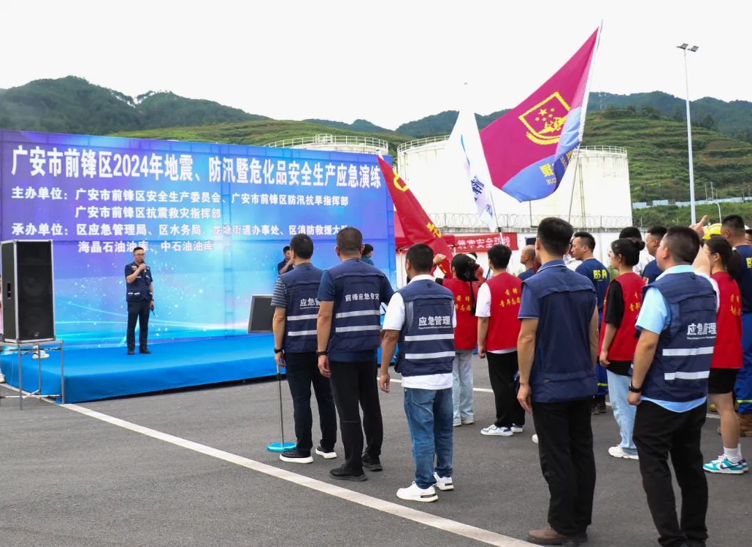 此次演练模拟了“强降雨致前锋区境内部分河流水位上涨,同时受地震侵袭,辖区部分地方发生山洪险情,以及油库设施发生油品泄漏事故”的极端灾害事故场景。按照计划,演练分为地震紧急疏散、山洪险情处置、油品泄漏事故处置三个科目。